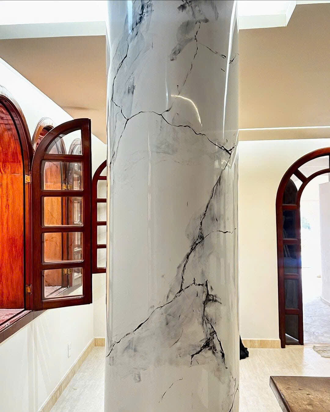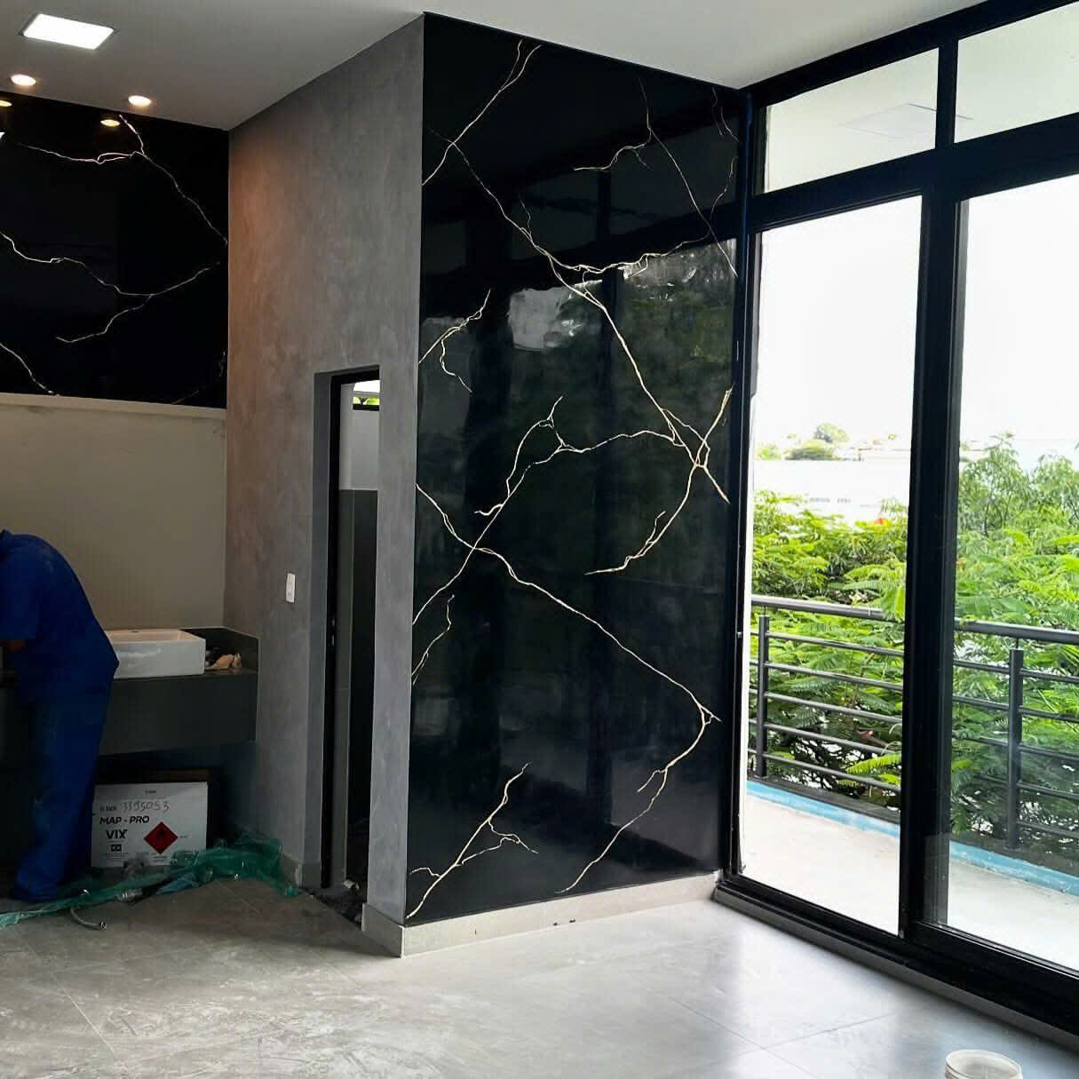 Thi công tỉ mỉ với kỹ thuật pha màu và tạo vân đá chuẩn xác.